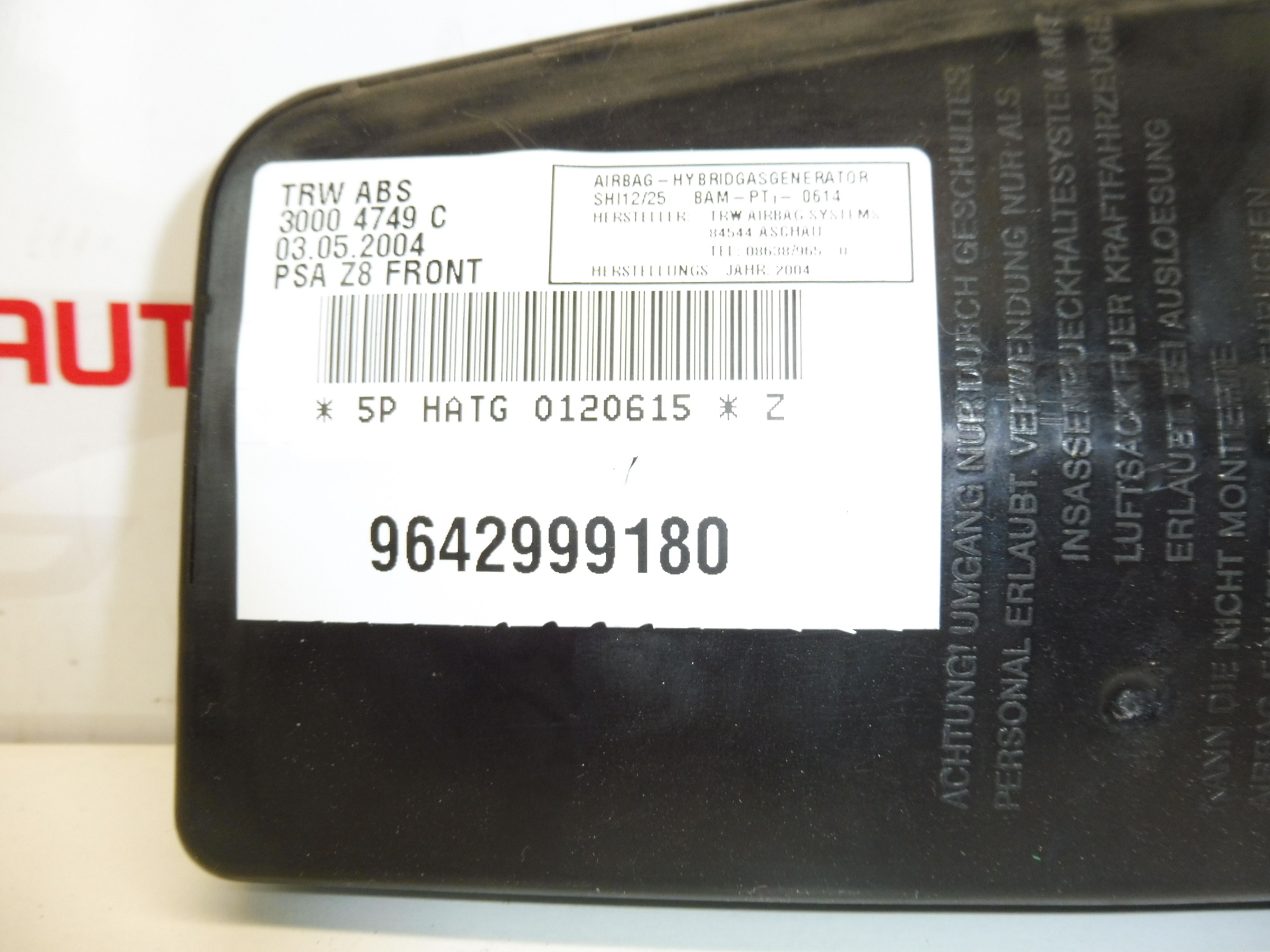 Airbag siège avant droit Peugeot 607 9642999180 30004751 8216L4