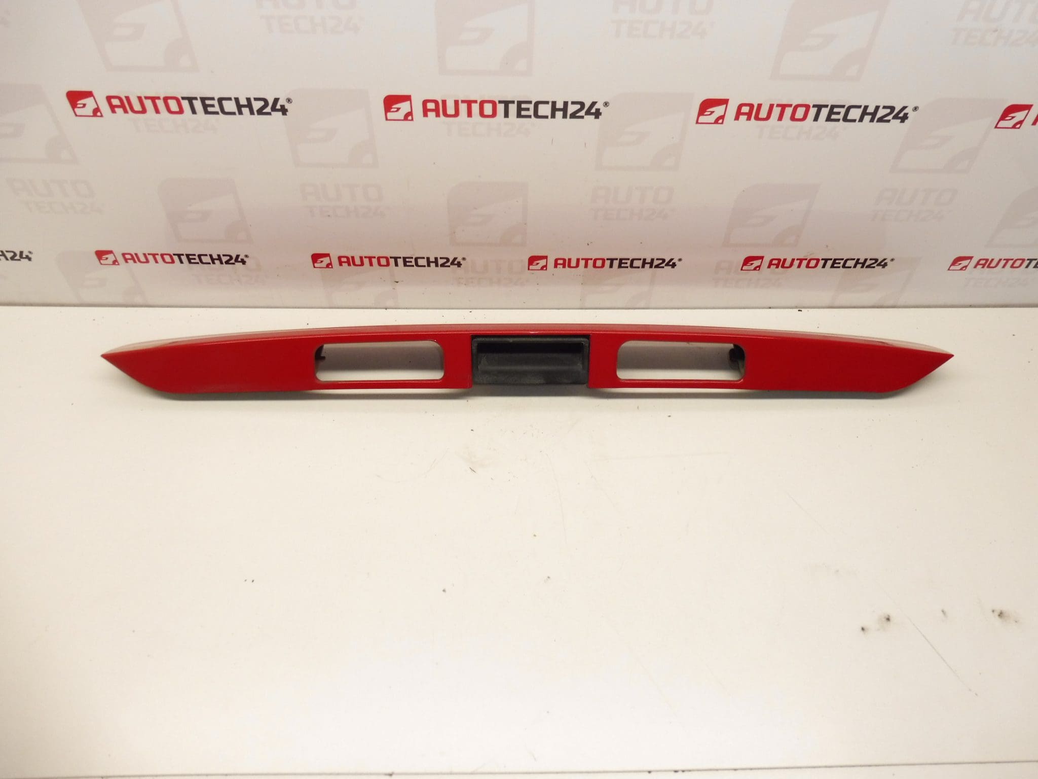 PEUGEOT 207 poignée de hayon avec interrupteur d’ouverture de hayon couleur KKN – PEINTURE ROUGE ADEN pièce d’occasion – présente des traces d’utilisation manque un support plastique entièrement fonctionnel
