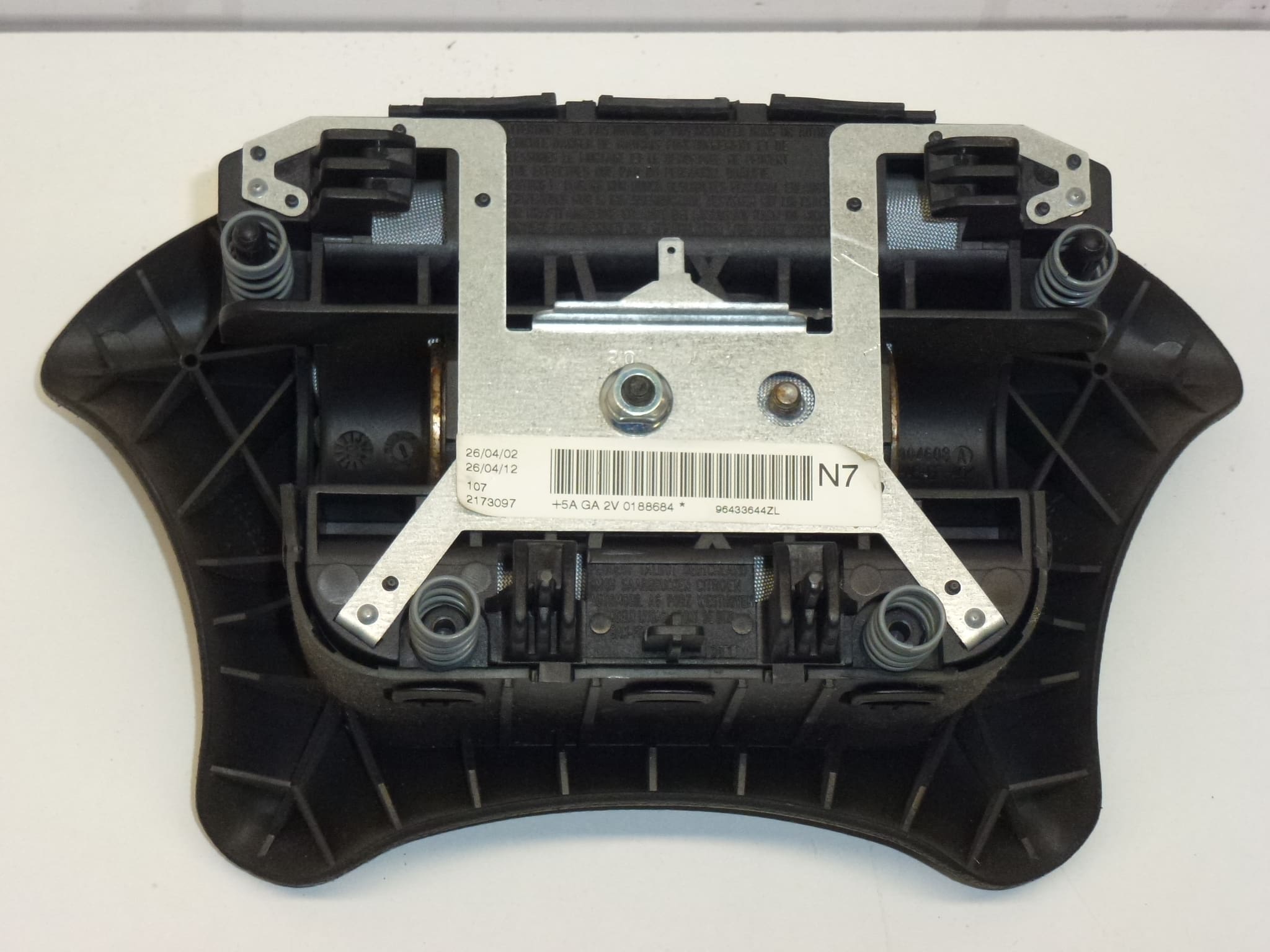 Airbag du conducteur d’origine au volant pour le Citroën Xsara et Citroën Xsara Picasso avec un déclenchement de deux étages (2 fusils). Il s’agit d’un module avec une couverture avant en FXT – Black Cornelie, conçu directement pour la plate-forme PSA, de sorte qu’il s’adapte exactement au volant et utilise les mêmes connecteurs et la même attachement. Avec les codes d’origine 96433644ZL et 4112.ft, vous pouvez facilement vérifier la compatibilité avec votre voiture.